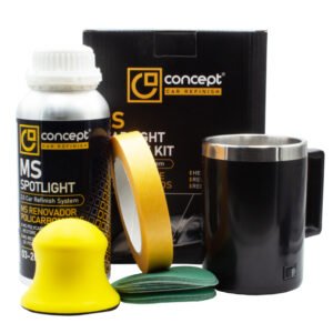 Restaurador de faros con base MS. Se aplica mediante una pistola vaporizadora. Protege de los rayos UV. Fácil de usar. Contenido del kit: 1 Vaporizador. 1 Cargador. 1 MS faros 600 ml. 1 Taco.