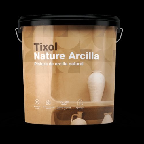 Tixol Nature Arcilla. Pintura de arcilla 100% natural, formulada con ligantes vegetales y tierras naturales para revestir techos y paredes en interior. Especialmente recomendada en locales con fondos minerales donde se requiera una máxima transpirabilidad, una calidad del aire en interior superior y minimizar la proliferación de mohos y microorganismos. También puede ser aplicada sobre pinturas, placas de cartón yeso, yeso o cemento previamente imprimados con Tixol Endurecedor de fondos. Proporciona acabados naturales, disponible en carta de 18 colores y tres texturas, fina, media y rugosa. Uso recomendado para personas con sensibilidad química. Libre de metales pesados, disolventes y sustancias toxicas. Cov 0%, libre de formaldehido.
