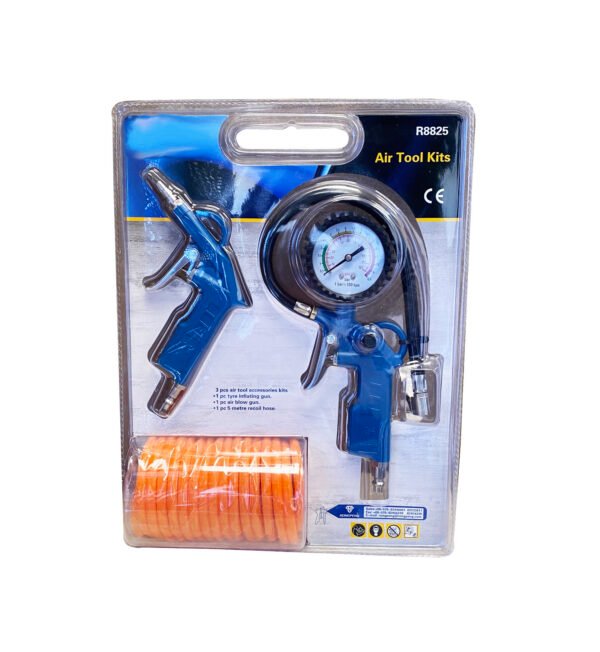 | Descripción | Inflador de neumáticos con manómetro. Manguera espiral con acople rápido. Trabajo 0-8 bar de presión. Pistola de aire comprimido |