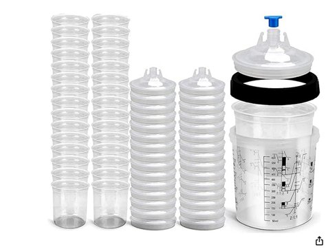 Depósitos de plástico desechables, ideal para mantener el depósito principial intacto sin manchar. CONTIENE: 50 depósitos desechables, 50 tapas desechables, 10 tapon de sellado, 1 anillo de retención, 1 depósito principal duro y 1 acople para la pistola NOTA:.. Colador tamiz de 125mic COSIDO a la Tapa desechable