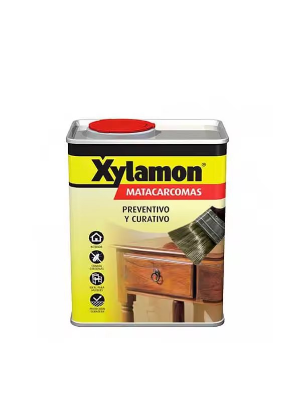 Xylamon Matacarcomas Plus es un tratamiento curativo y preventivo de la madera contra carcomas. Base disolvente incoloro y de bajo olor. Xylamon Matacarcomas Plus protege eficazmente de forma preventiva y curativa a la madera contra las carcomas. Este producto es un tratamiento curativo y preventivo de la madera contra carcomas.