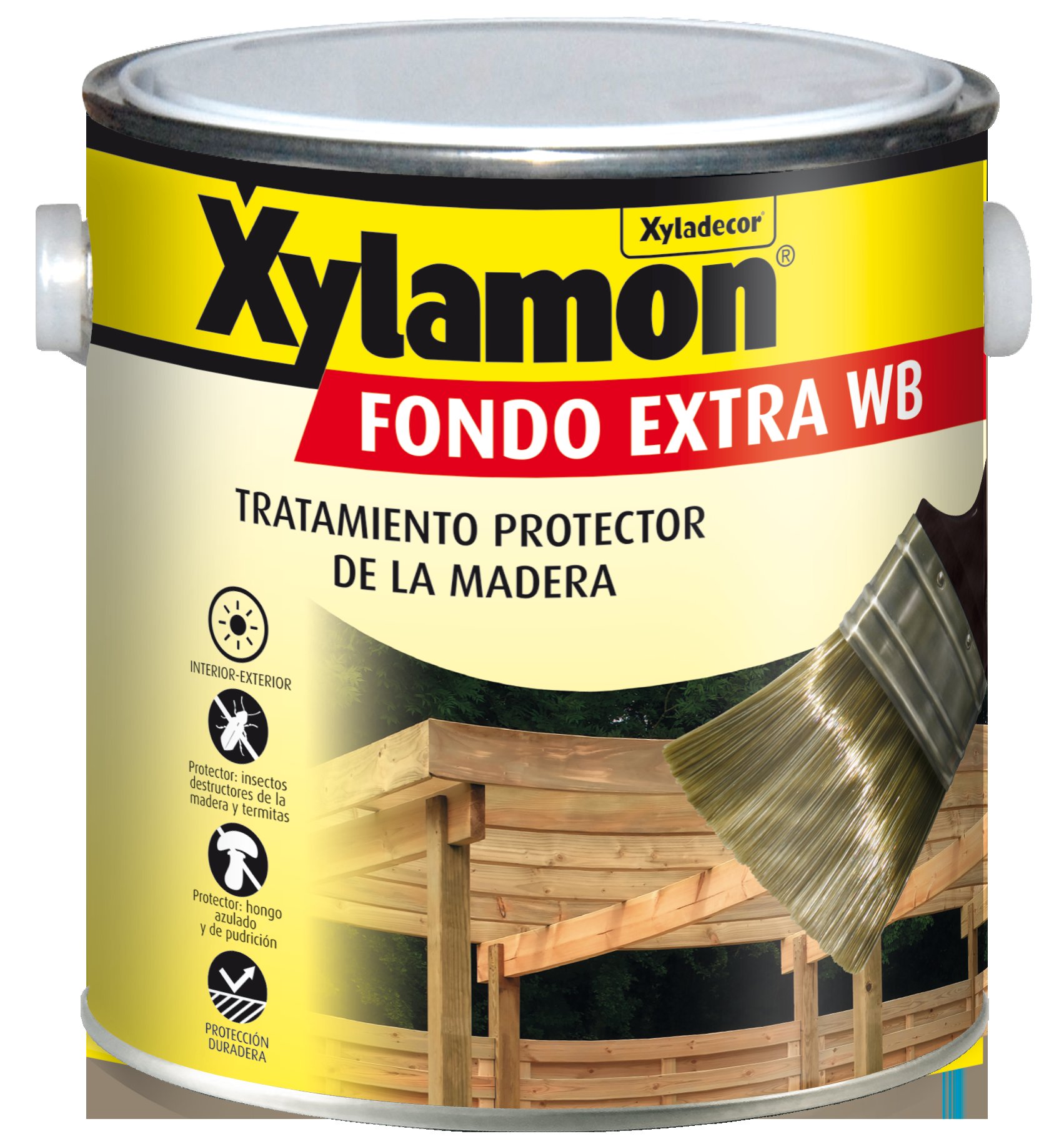 Xyladecor Xylamon Fondo Extra WB es un protector de la madera para el tratamiento preventivo contra los insectos, xilófagos, carcomas y termitas, hongos destructores de la madera y hongos del azulado. Para maderas de interior o bajo cubierta y de exterior sin contacto con el suelo. Actúa contra el efecto de la humedad, de la lluvia y del agua.
